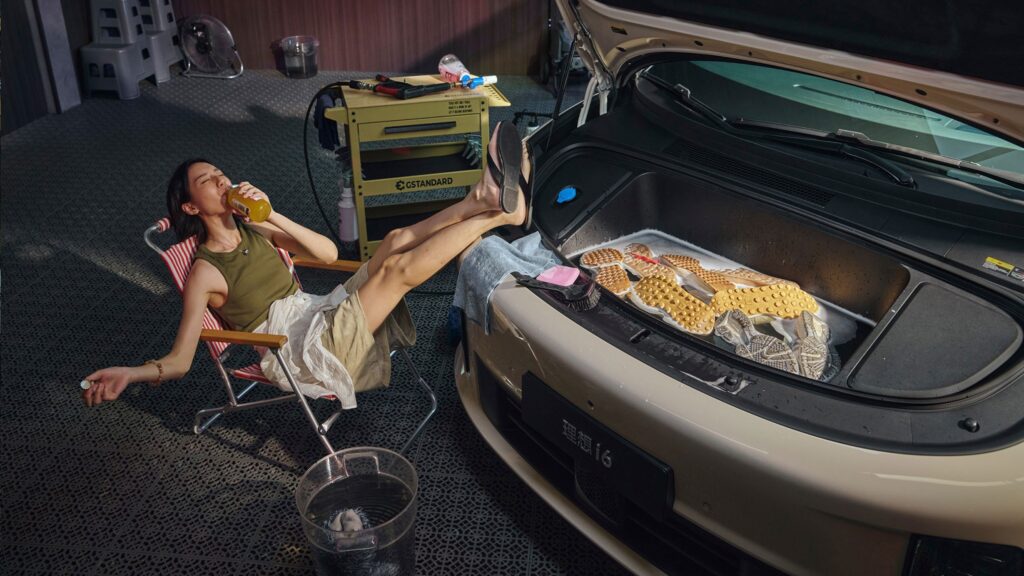 Гибкое пространство: холодильник, ТВ, большой диван, аудиосистема, стол и кровать — автомобиль превращается в мобильный центр досуга.